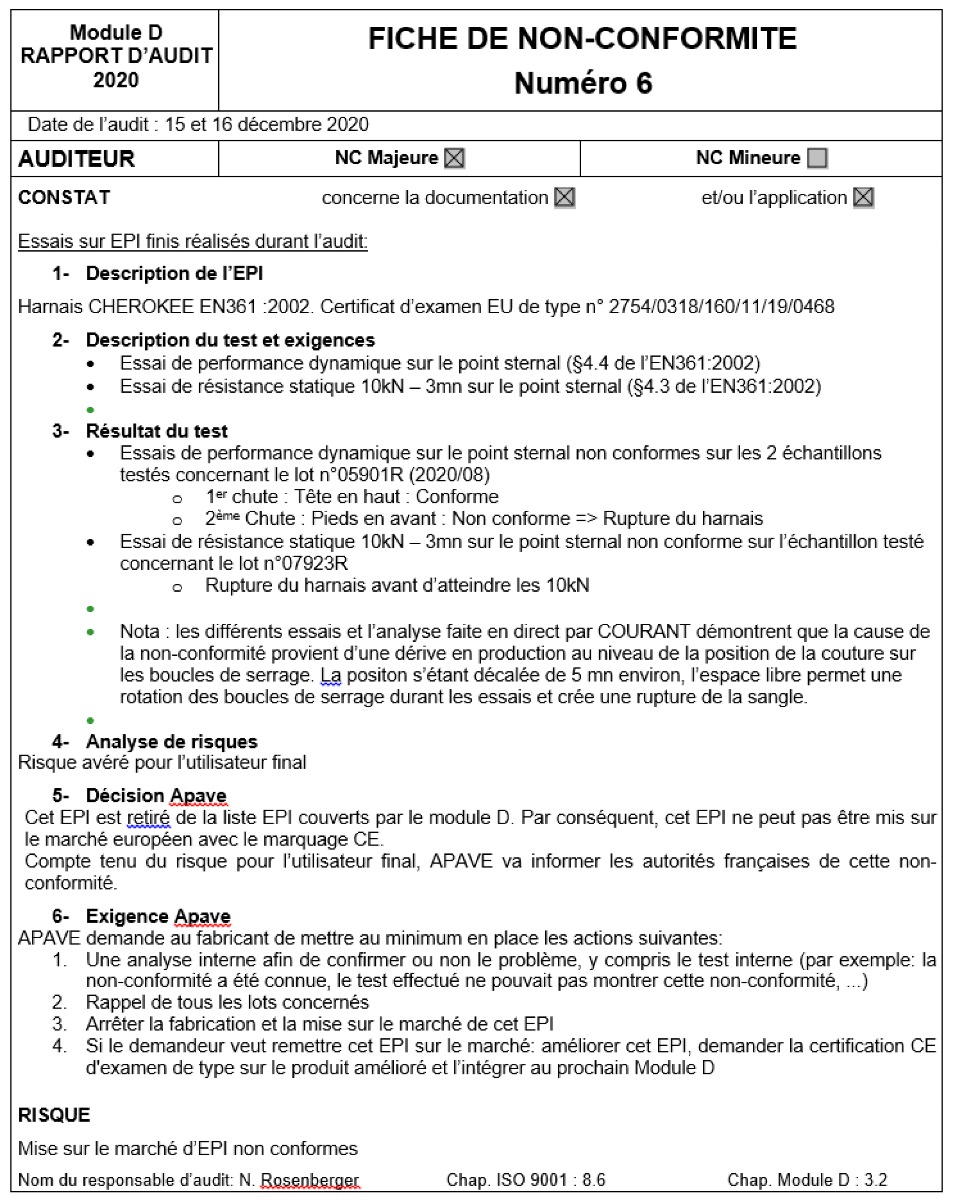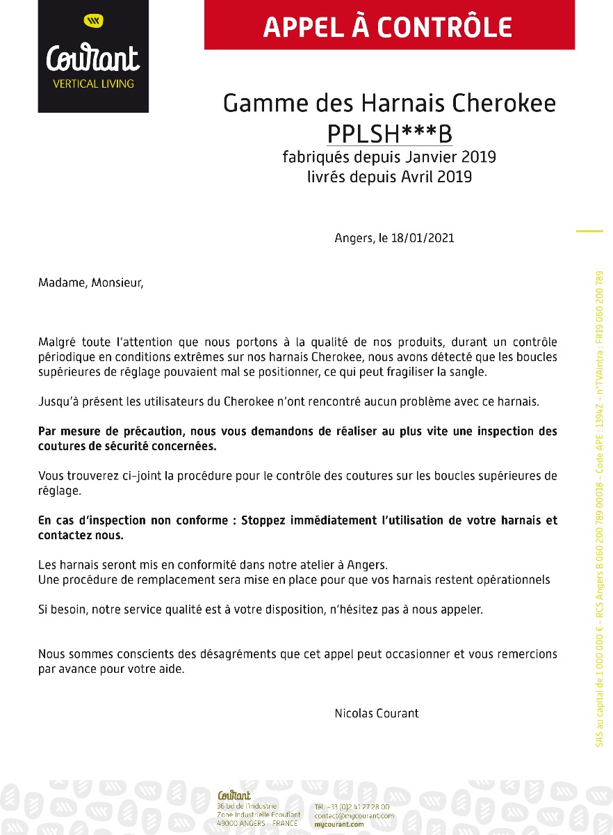 Appel à contrôle    - Harnais CHEROKEE de COURANT