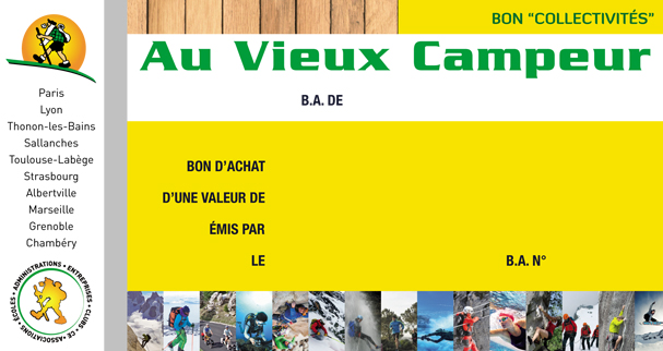 Par l'intermédiaire des bons d'achat pour collectivités, Au Vieux Campeur permet aux organismes d'offrir à leurs collaborateurs, salariés ou clients de profiter de tarifs privilégiés.
