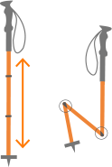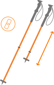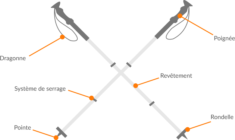 Privilégiez des bâtons télescopiques en 2 ou 3 brins afin de pouvoir en moduler la taille en fonction des phases ascendantes, descendantes ou à plat.
