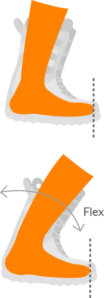 Une fois le chausson serré et la boot correctement fermée et serrée, mettez-vous en flexion pour que votre pied vienne se caler au niveau du talon. La position fléchie, votre position naturelle sur votre snowboard, vous permet de faire reculer votre pied dans la chaussure.
