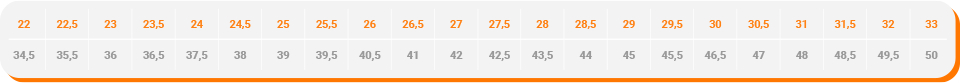 (de Mondopoint en taille française), valeur approximative pouvant varier très légèrement d’une marque à une autre.