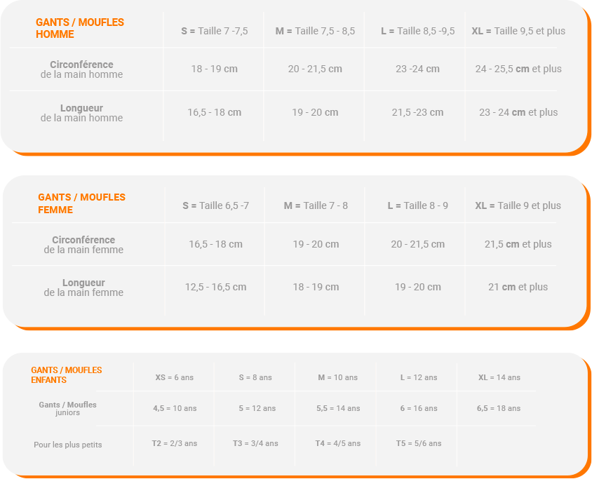 Un gant trop ajusté gêne vos mouvements, n'emmagasine pas d'air et vous tient donc moins chaud, puisque l'air immobile reste le meilleur des isolants... N'hésitez pas à mesurer votre main pour connaître exactement votre taille de gants pour le ski. Rien de plus simple :