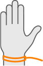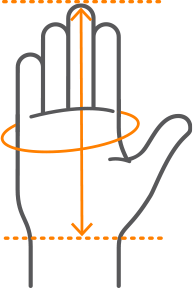 - Ainsi que le tour de votre main, au niveau du pli digito-palmaire (voir notre schéma).