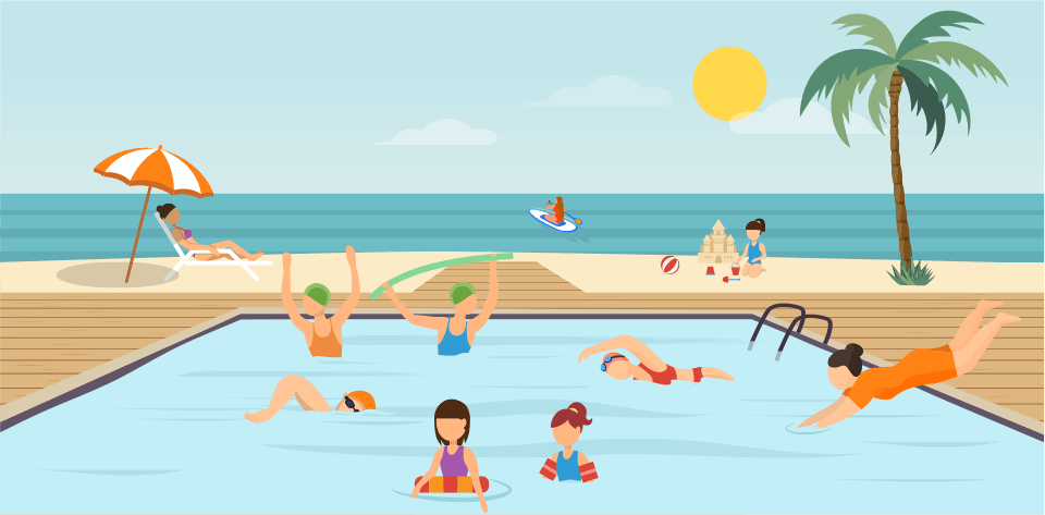 Nageurs et nageuses en piscine