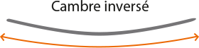 • Cambre inversé (rocker - full rocker) Le contact avec la neige se fait au centre du snowboard (partie entre les pieds). La surface de contact avec la neige se voit réduite ce qui accroît la maniabilité et le pivotement, même à faible allure. En poudreuse, vous aurez l’impression de voler, de déjauger sans besoin de trop forcer sur la jambe arrière. En résumé : planche tolérante et particulièrement ludique.