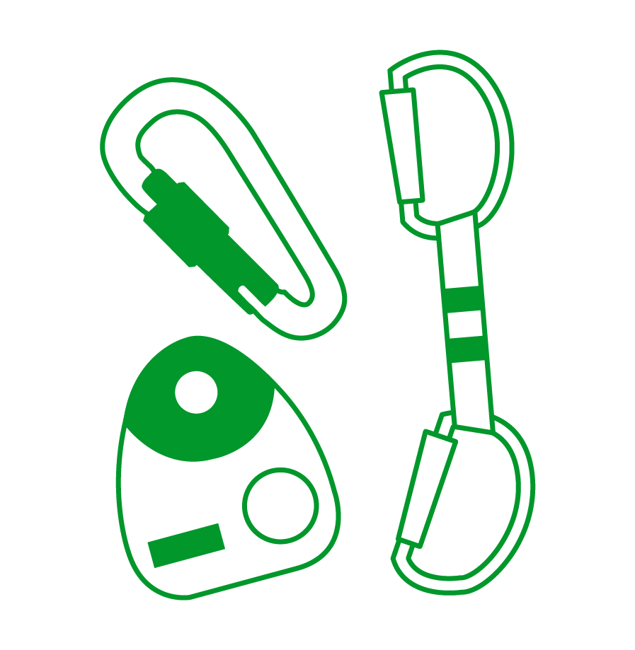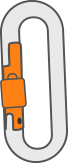 Les mousquetons de sécurité (mousquetons avec verrouillage) s’utilisent pour connecter en toute sécurité l’appareil d’assurage au baudrier, mettre en place un relais pour l’assurage en grande voie, connecter une longe à un ancrage…