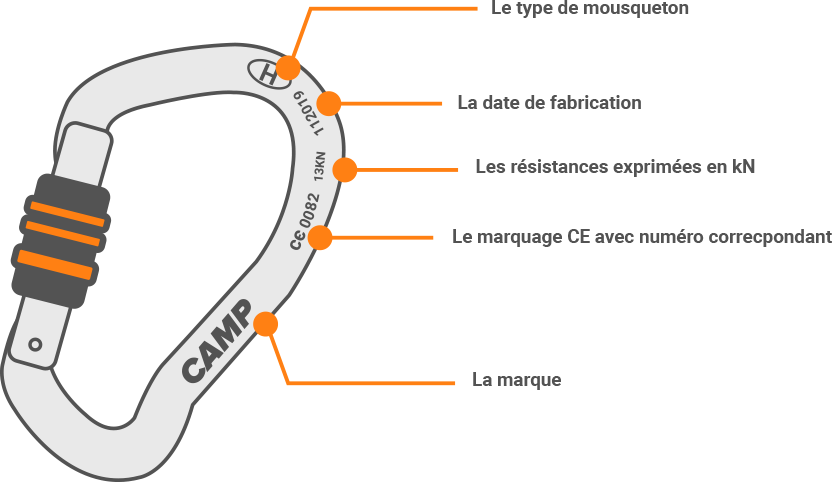 Sur le corps de votre mousqueton, certaines informations doivent obligatoirement apparaître, notamment :