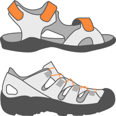 Contrairement aux sandales ouvertes, les sandales fermées possèdent un réel système de laçage, plus souvent à l’aide d’un lacet élastique et d’un système de serrage/desserrage rapide.