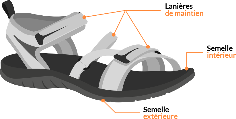 Par définition, la sandale est une chaussure légère munie d’une semelle et d’un système d’attache par lanières. Plus confortable qu’une simple tong, la sandale se démocratise de plus en plus pour l’outdoor, aussi bien en voyage qu’en randonnée. En effet, légèreté, facilité à chausser et ventilation sont des critères particulièrement appréciés lorsqu’il fait chaud.