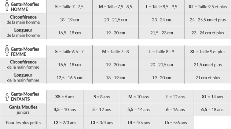 Pour vos randonnées hivernales, optez pour des gants chauds, pour femme comme pour homme : gants softshell doublés voire gants de ski pour les grands sensibles au froid. C’est votre destination et les conditions à affronter qui détermineront l’isolation thermique dont vous avez besoin. Le gant de ski a l’avantage d’être, quasi toujours, imperméable tandis que le gant softshell est déperlant. Néanmoins, n’importe quel gant peur aujourd’hui devenir imperméable grâce aux surmoufles : véritables vestes imper, pour les mains.